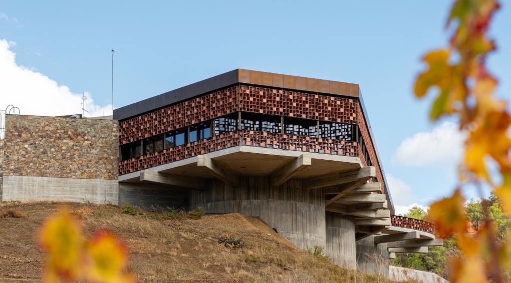 Marathasa Wines is a state-of-the-art winery located in the charming Oikos village in the Marathasa Valley, high in the Trodos Mountains at 1,125 meters above sea level. Officially opened in June 2023, this award-winning facility represents a modern vision for revitalizing Cyprus’ viticultural heritage. The winery was established by John Papadouris, whose family hails from the nearby village of Kalopanayiotis and whose grandfather was a wine merchant. The project involved replanting abandoned vineyards and establishing new ones across 13 hectares of terraced vineyards, all within 10 minutes’ driving distance of the winery. The distinctive architecture, inspired by the local monastery with its three domes, features high-ceilinged structures topped by latticed wooden roofs, creating an extraordinary setting that overlooks the surrounding mountains and valleys.